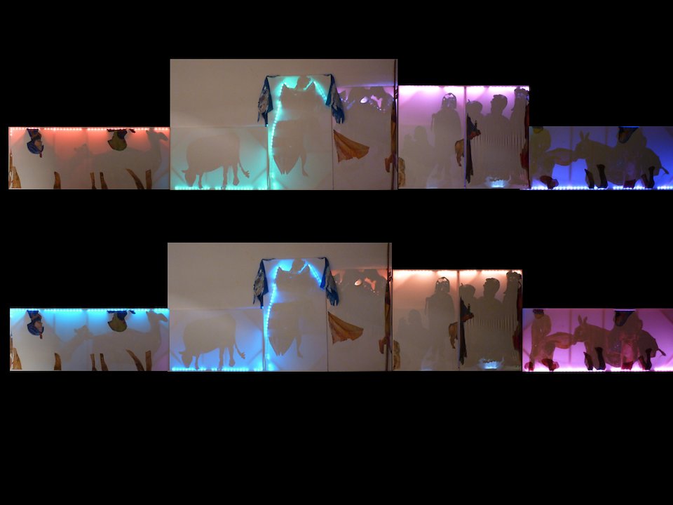 Shadows, 2012-18, Led light, lime, plaster, shell, plastic toy baby, shepherd’s crook, mini espadrilles, charcoal, and acrylic painting on non-woven fabric glued on cotton canvas, 70 55/54 x 417 21/64 in. (180 X 1060 cm) | Pic 35